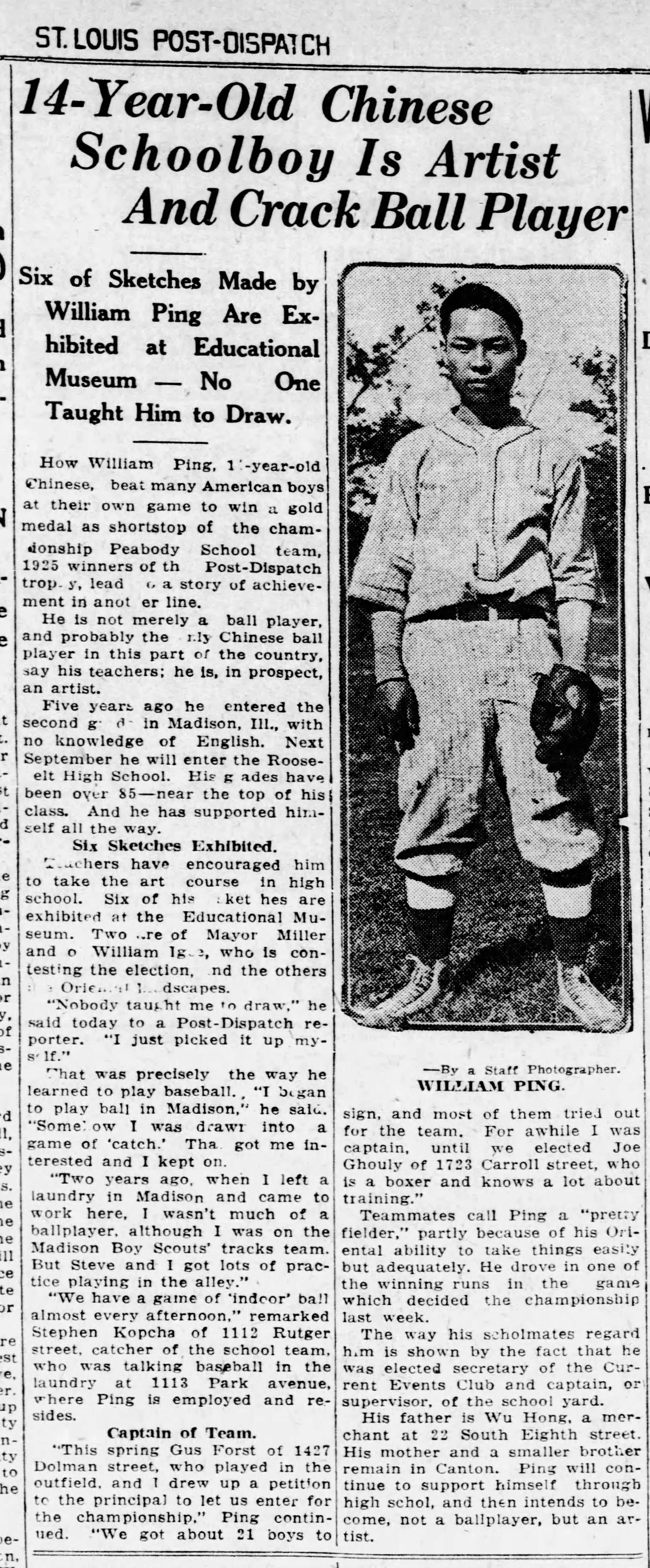 One boy, William Ping (incorrectly identified as Pring) was another baseball star that the local media became fascinated with. He would eventually become an engineer for Century Electric Co. in St. Louis.